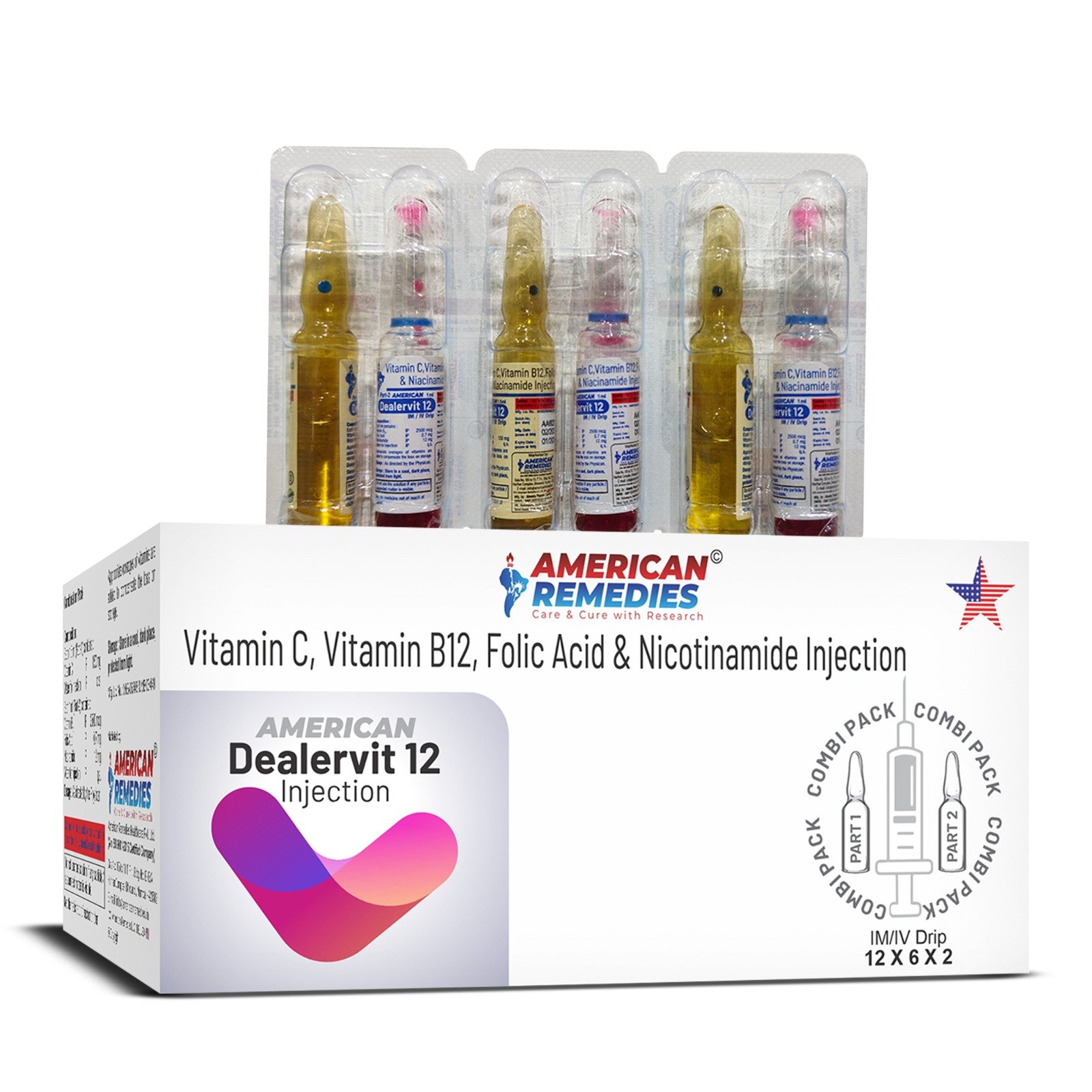 DEALERVIT 12 injection contains Vitamin C, vitamin B12, Folic Acid & Niacinamide Injection to treat or prevent vitamin deficiencies caused by poor diet, certain illnesses, or alcoholism.
