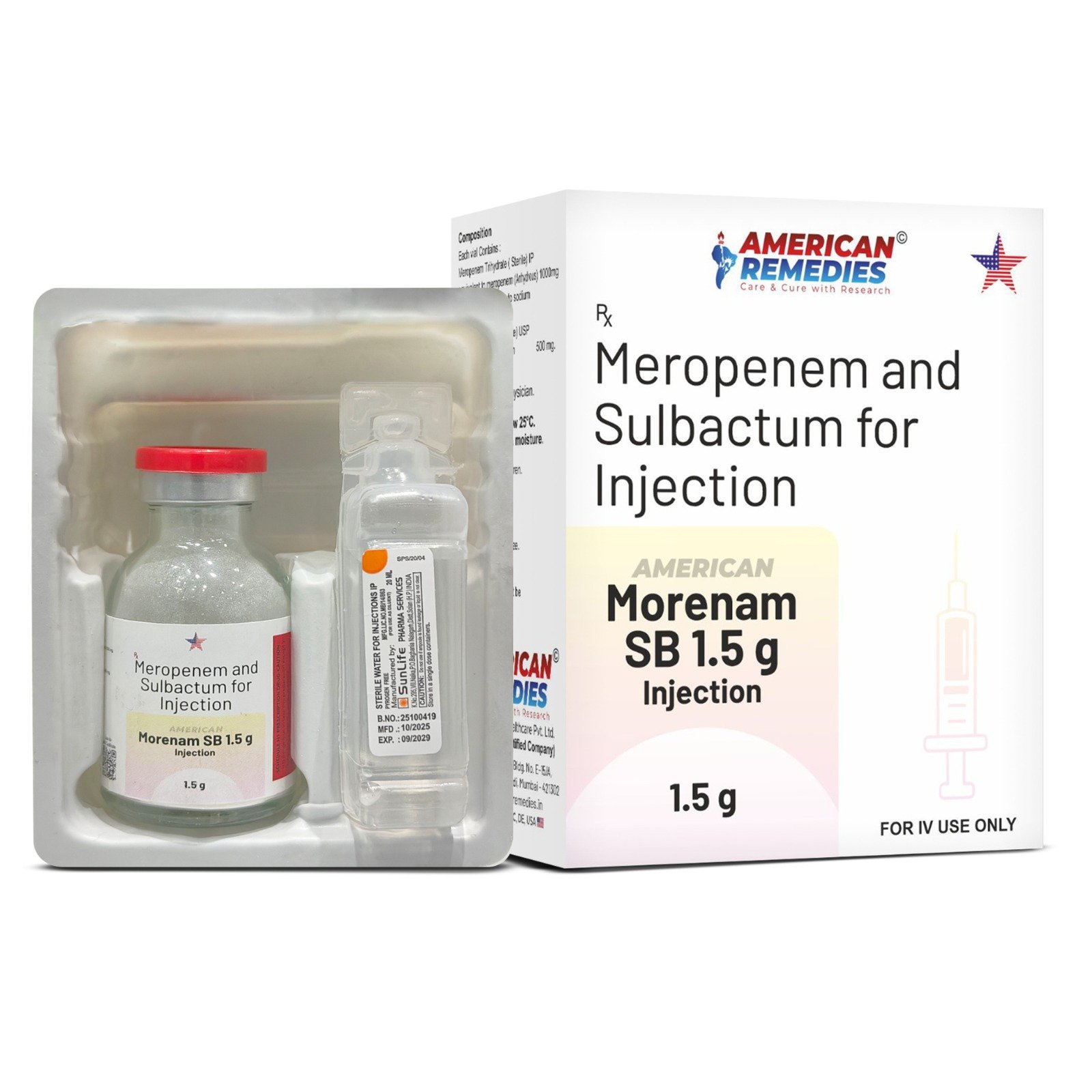 MORENAM SB 1.5g contains  Meropenam 1000mg + Salbactum 500mg which is used to treat severe, complicated bacterial infections, including hospital-acquired pneumonia, abdominal infections, urinary tract infections, and skin infections.